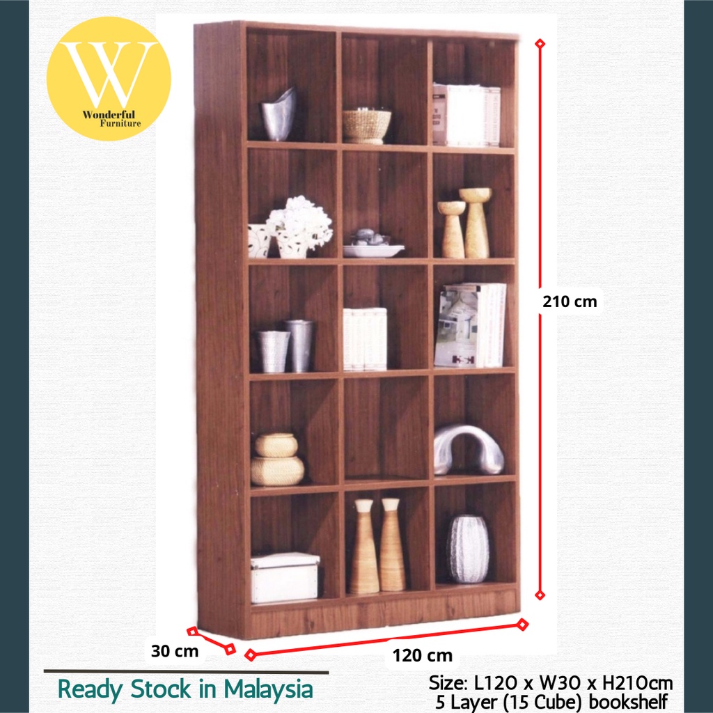 WONDERFUL CHOMP MDF Board Bookcase 5 Tier Rak Buku 15 Cube Storage Bookshelf Bookcase Almari